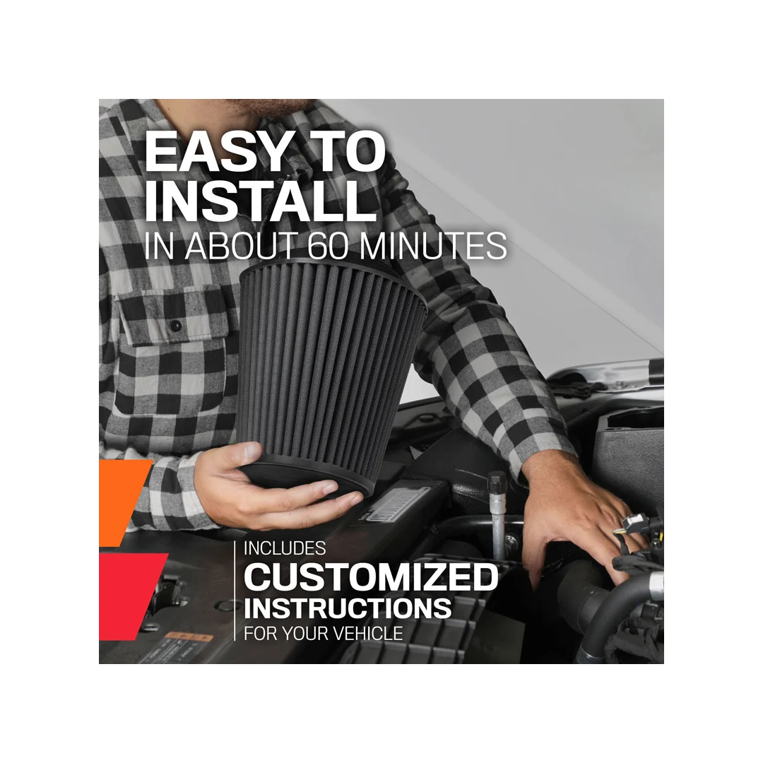 - Replaces entire factory air intake system